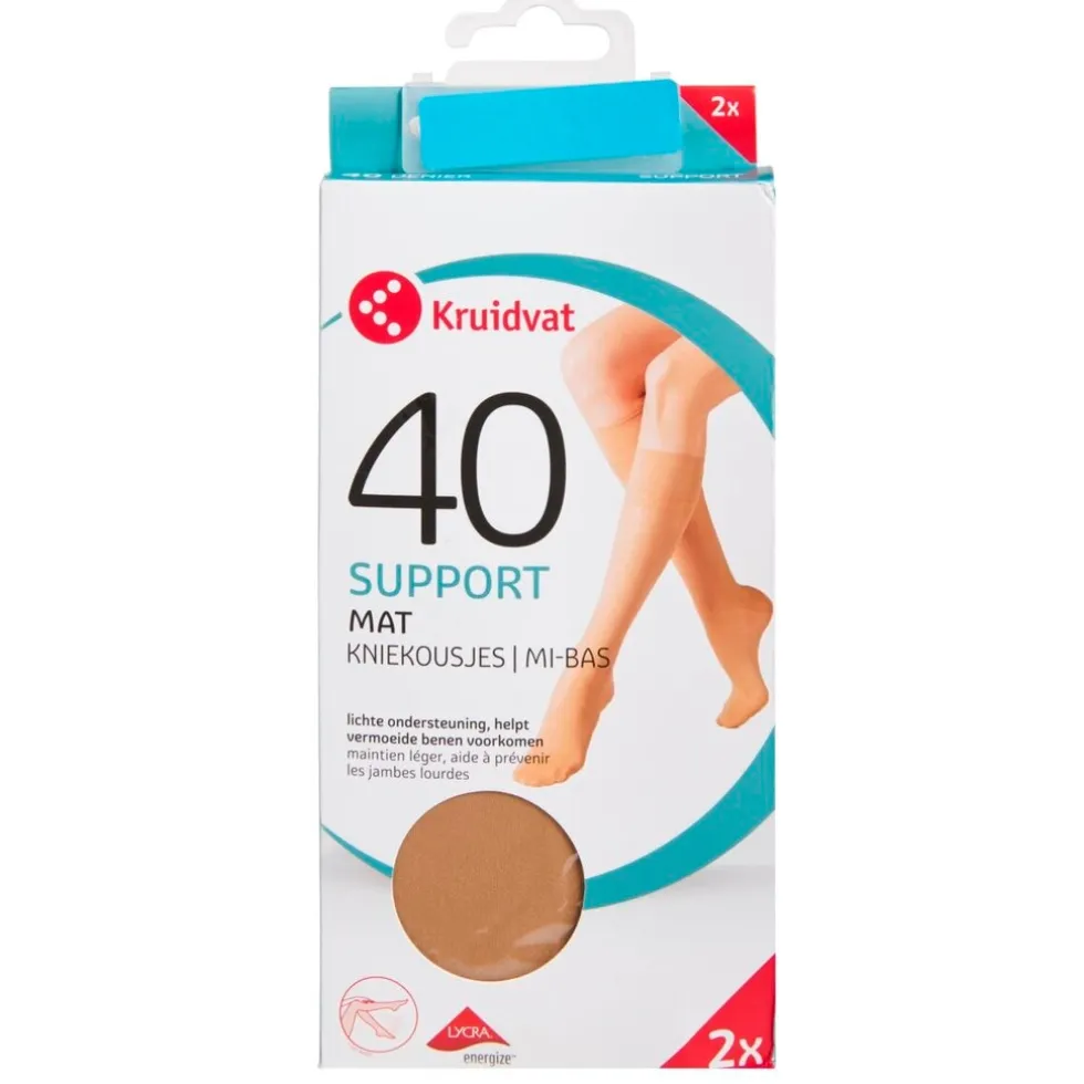 De Kruidvat Ondersteunende 40 Den Kniekous biedt ondersteuning en heeft een ingebreide hiel. De kniekous stimuleert de bloedsomloop, voorkomt vermoeide benen en geeft extra ondersteuning.