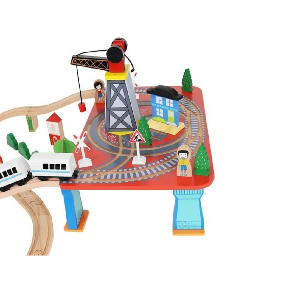 De baan is relatief eenvoudig. Je kunt het gemakkelijk inpakken en meenemen op vakantie, of gewoon het plezier verplaatsen van de kinderkamer naar het huis van je vrienden, grootouders of kleuterschool. De houten elementen van de set kunnen veilig in het zand of op de weide worden gebruikt. Dit maakt de houten trein geschikt om in de tuin, op het terras, op het strand of in de zandbak te spelen.