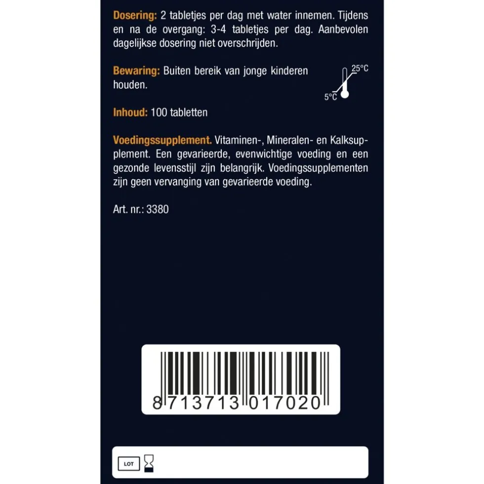 Dosering: 2 tabletjes per dag met water innemen. Tijdens en na de overgang: 3-4 tabletjes per dag. Aanbevolen dagelijkse dosering niet overschrijden.