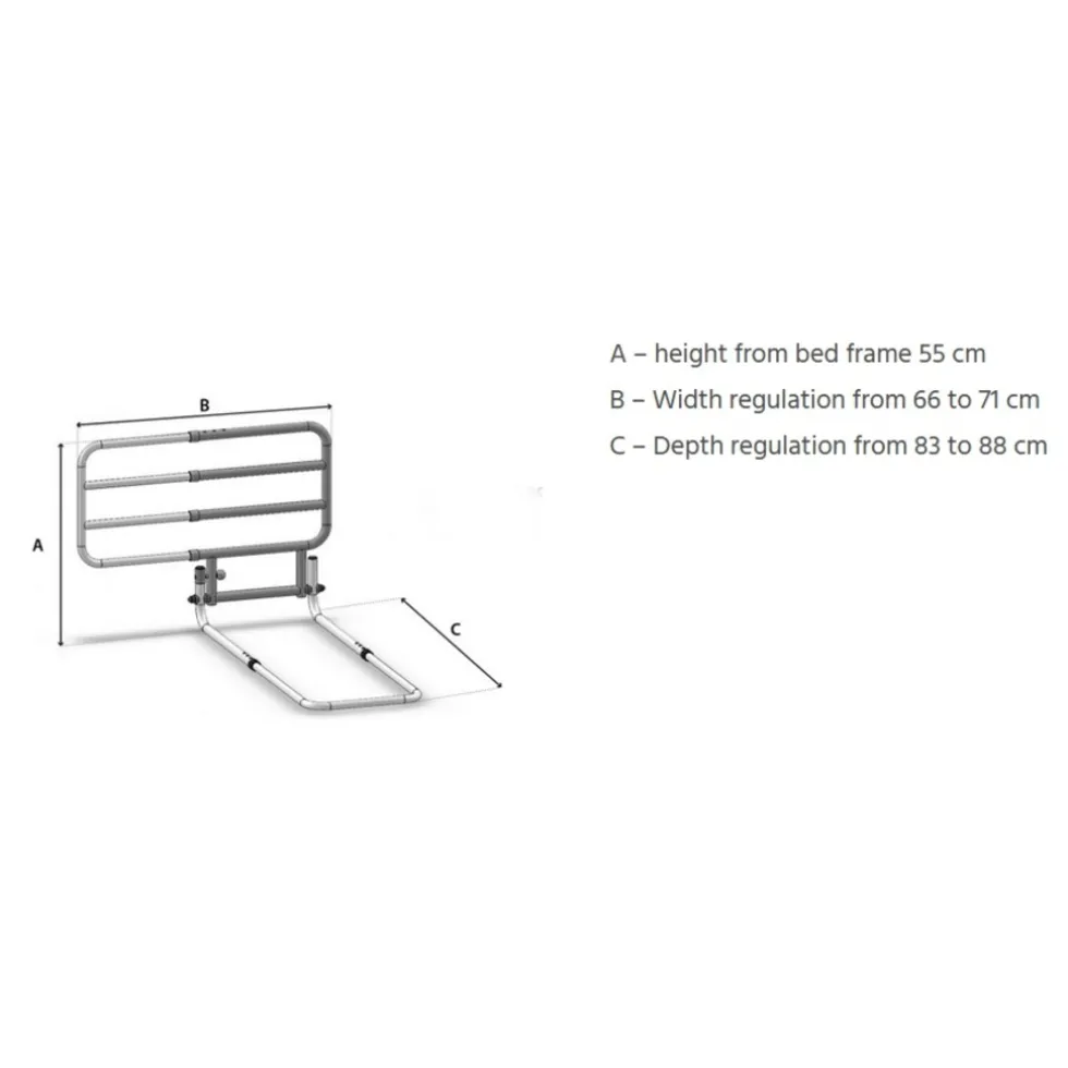 - Het recht opstaande deel deel van het bedhek is naar beneden te klappen wanneer het niet in gebruik is
