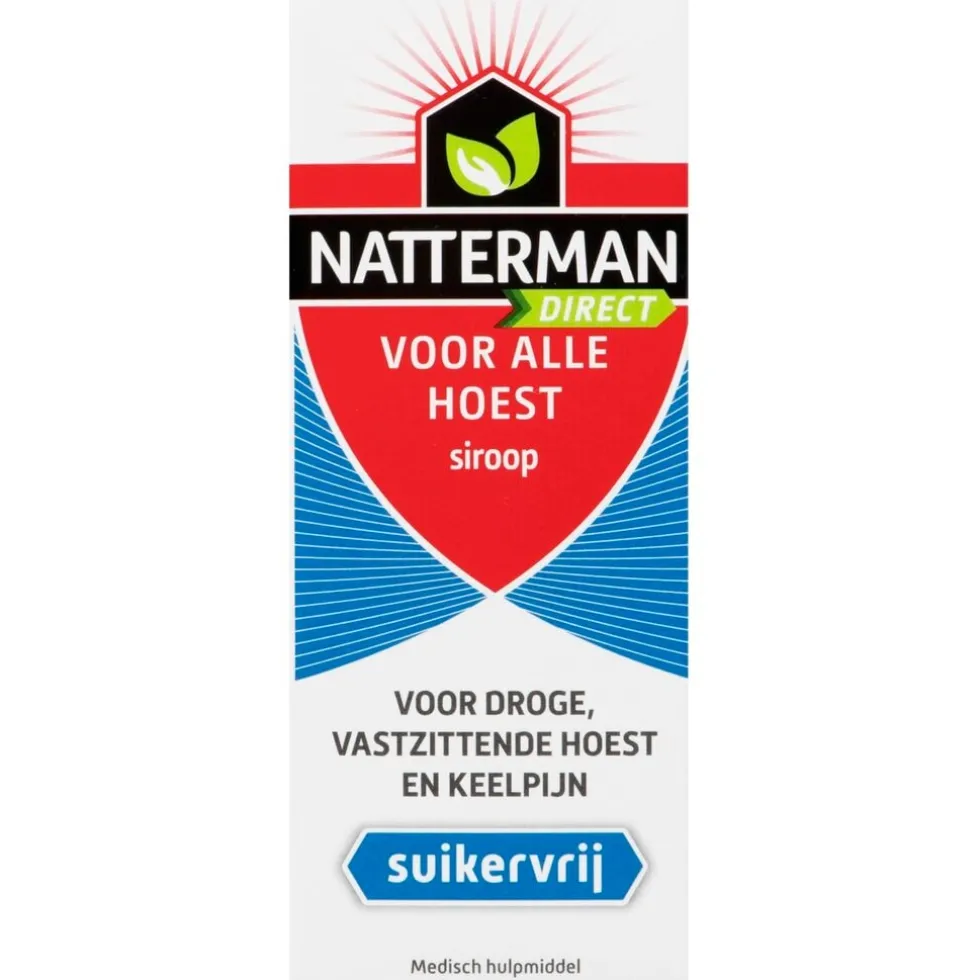 Natterman Direct Voor Alle Hoest Suikervrije Siroop helpt bij de behandeling van alle soorten hoest: vastzittend, droog, irriterend, allergisch en bij keelpijn. De siroop is suikervrij.