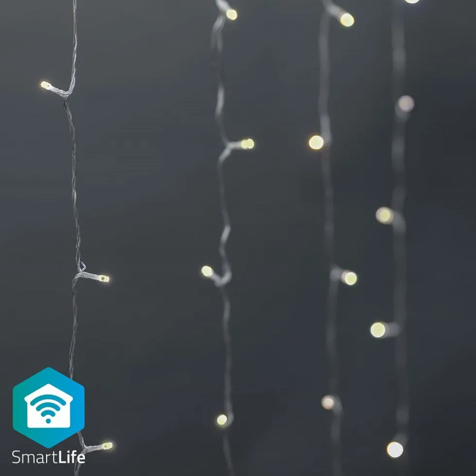Dit gebruiksvriendelijke Smart Wi-Fi-gordijn van Nedis met 200 warm- tot koelwitte LED’S heeft 10 snoeren met elk 20 LED’s en is ideaal voor muur-, dak- en raamdecoratie. Door de geavanceerde slimme technologie tilt het jouw decoratie naar een hoger niveau. Je kunt in de app niet alleen de gewenste helderheid regelen, maar ook een van de 7 vooraf gedefinieerde effecten met verschillende soorten bewegingspatronen of de stabiele modus kiezen. Voor nog meer comfort kun je timers en routines instellen, zodat jouw lichtsnoer altijd op het juiste moment brandt.Met spraakbediening via Amazon Alexa of Google Assistant kun je de lichten ook in- of uitschakelen, dimmen of de helderheid ervan selecteren met alleen maar een spraakopdracht. Met de geïntegreerde microfoonfunctie reageren de lichten op jouw muziek of andere geluiden.De transparante kleur van de kabel past netjes bij elke achtergrond en verstoort het optische beeld niet. Dit 3 meter lange netsnoer laat niets te wensen over. Erg praktisch als je stopcontact iets verder weg is. De boom kan buiten worden gebruikt.Eenvoudig in te stellenHet Smart Wi-Fi-lichtsnoer kan zonder gateway worden geïnstalleerd en rechtstreeks in je draadloze netwerk worden geïntegreerd. Dit vereenvoudigt de installatie en bespaart bijkomende kosten. Je kunt de lichten bedienen met de gratis Nedis SmartLife-app om automatiseringen in te stellen op basis van tijdsplanning, zonsondergang of in combinatie met andere Nedis SmartLife-producten. In combinatie met Google Home of Amazon Alexa kun je zelfs gesproken commando’s geven om de patronen van het gordijn te veranderen.