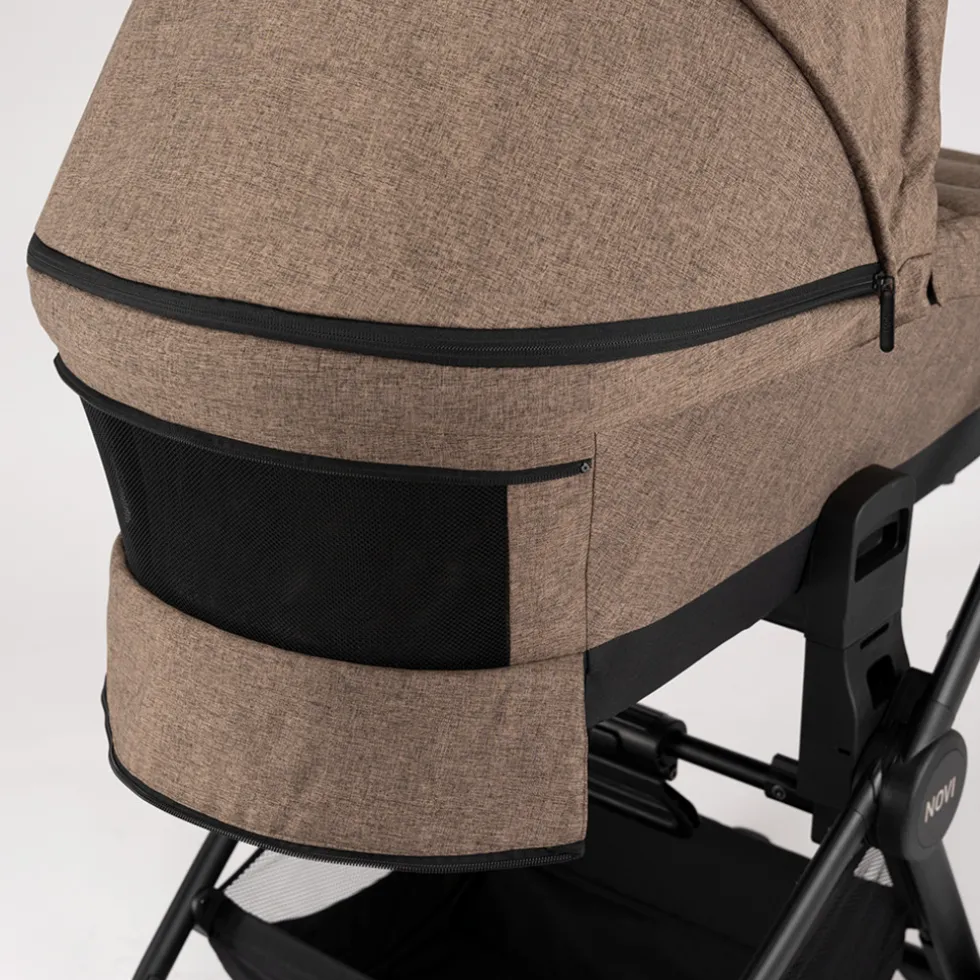 De reiswieg van de kinderwagen is voorzien van een stevige kuip met een gewatteerde binnezijde. De stiksels geven de bekleding een mooie look en het zachte matrasje zorgt voor goede comfort. In zowel de zonnekap als de kuip van de reiswieg zit extra ventilatie. Dit in combinatie met het afsluitbare dekje zorgt voor een optimaal klimaat voor je baby in de reiswieg.