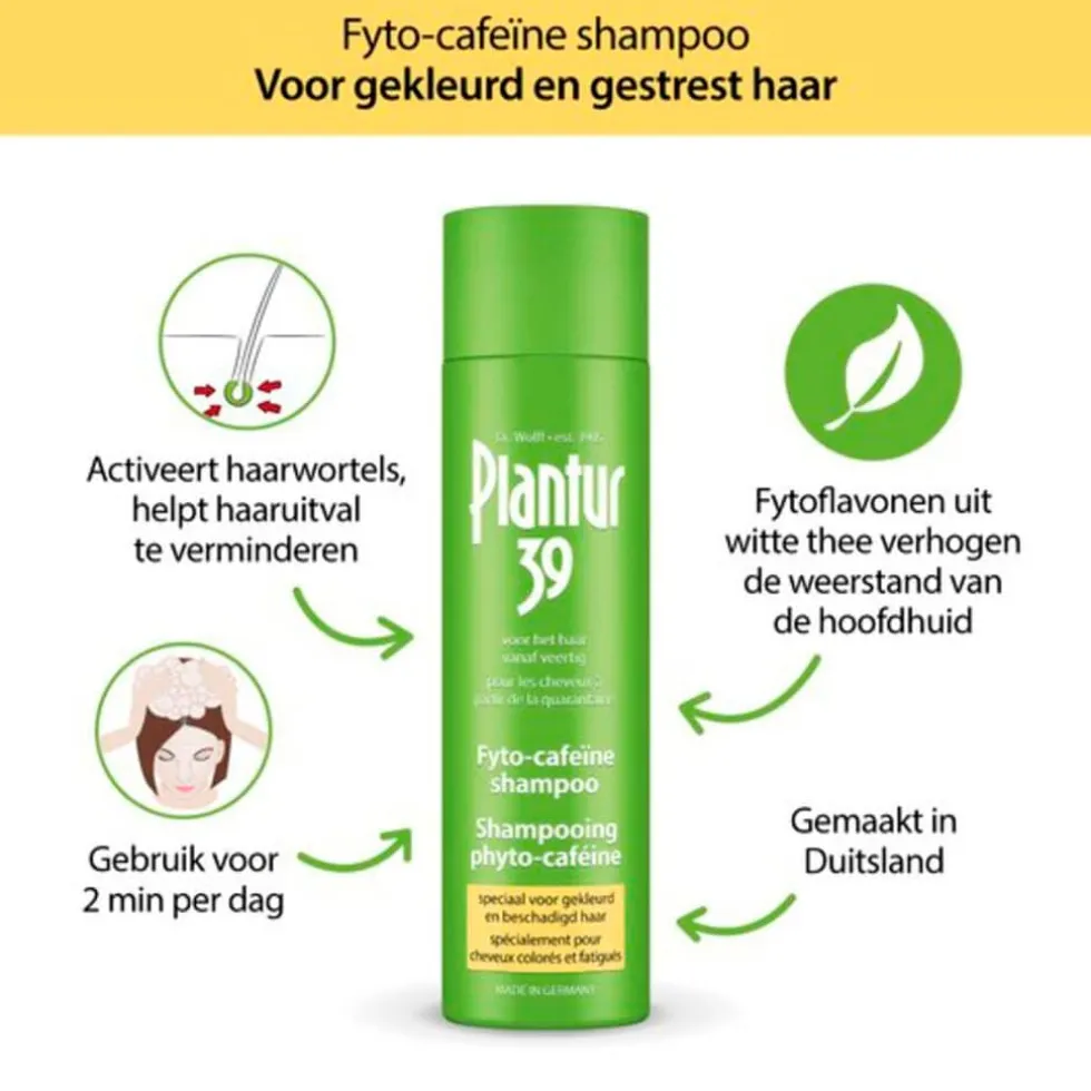 De activerende cafeïne in Plantur39 dringt bij het wassen door tot in de haarfollikels. Hierdoor wordt (vroegtijdig) haaruitval als gevolg van de menopauze verminderd. De shampoo herstelt en beschermt in het bijzonder gekleurd en beschadigd haar, de haarstructuur wordt glad gemaakt en je haar krijgt een intensieve glans.