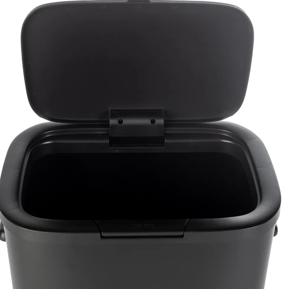 Deze prullenbak opent eenvoudig door op de ‘push’-knop van de deksel te drukken, waardoor het weggooien van afval moeiteloos en hygiënisch verloopt, zelfs wanneer je handen vol zijn. Met een inhoud van 55 liter biedt hij voldoende ruimte, zodat je minder vaak de vuilniszak hoeft te vervangen.