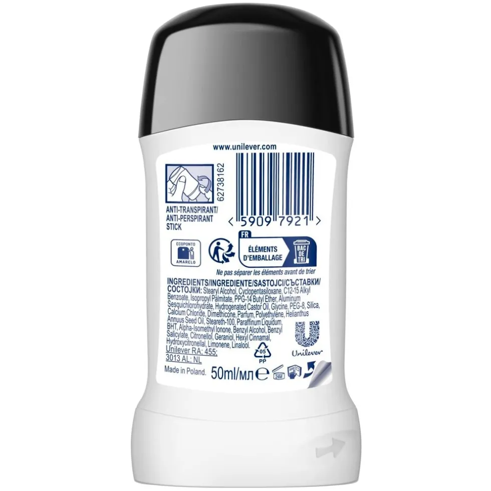 De Rexona Advanced Protection 72H Inivisible On Black & White Anti-transpirant Stick heeft de Crystal-formule. Deze formule helpt het vormen van witte strepen te minimaliseren. Zo ben je beschermd tegen witte strepen op je nieuwe blouse of jurk. Want de onzichtbare anti-transpirant zorgt ervoor dat zwart zwart blijft en wit wit.