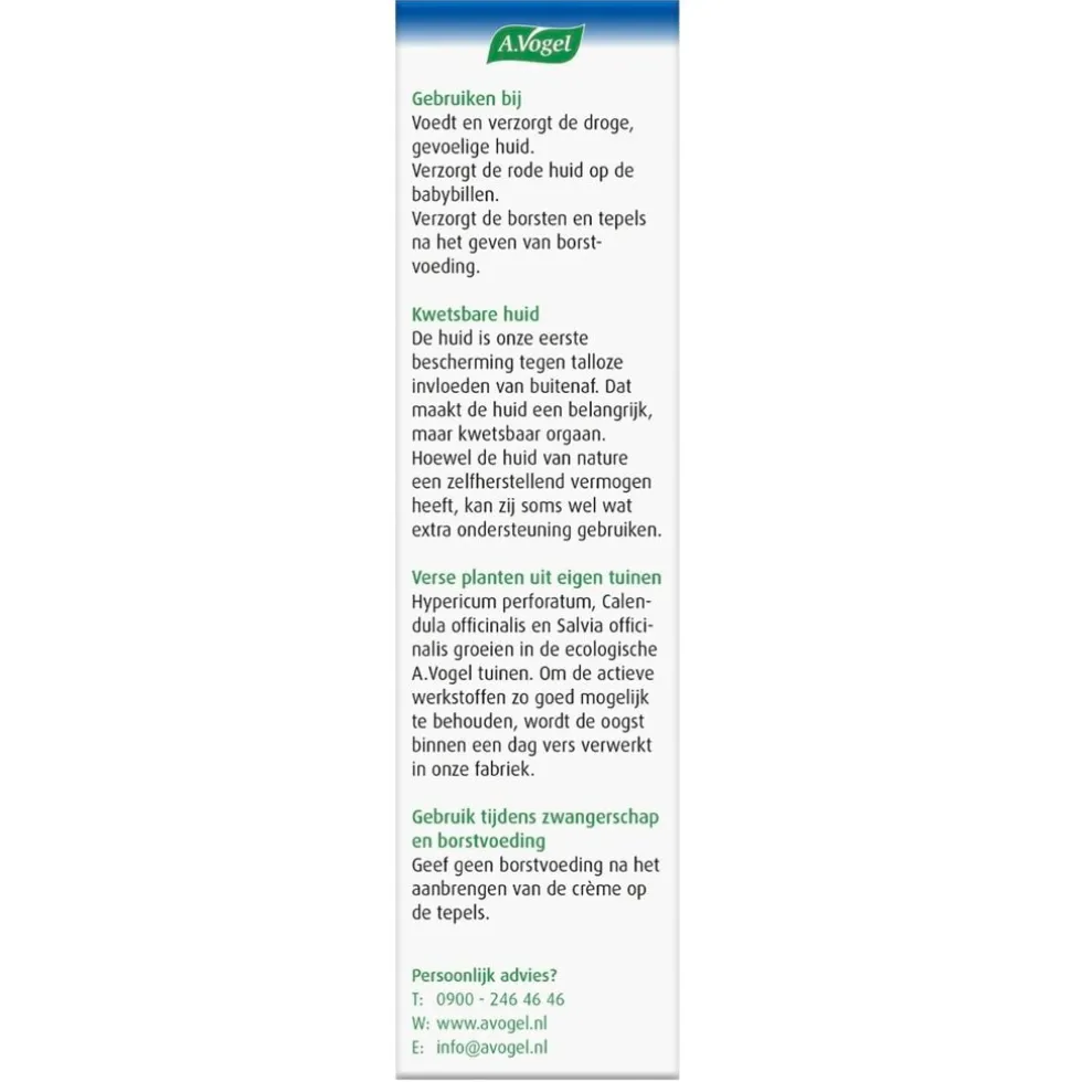 Ingrediënten: Lanolin, Aqua (zuiver water), Hypericum Perforatum Oil (sint-janskruid), Helianthus Annuus Seed Oil (zonnebloemolie), Cera Alba, Calendula Officinalis Extract (goudsbloem), Salvia Officinalis Extract