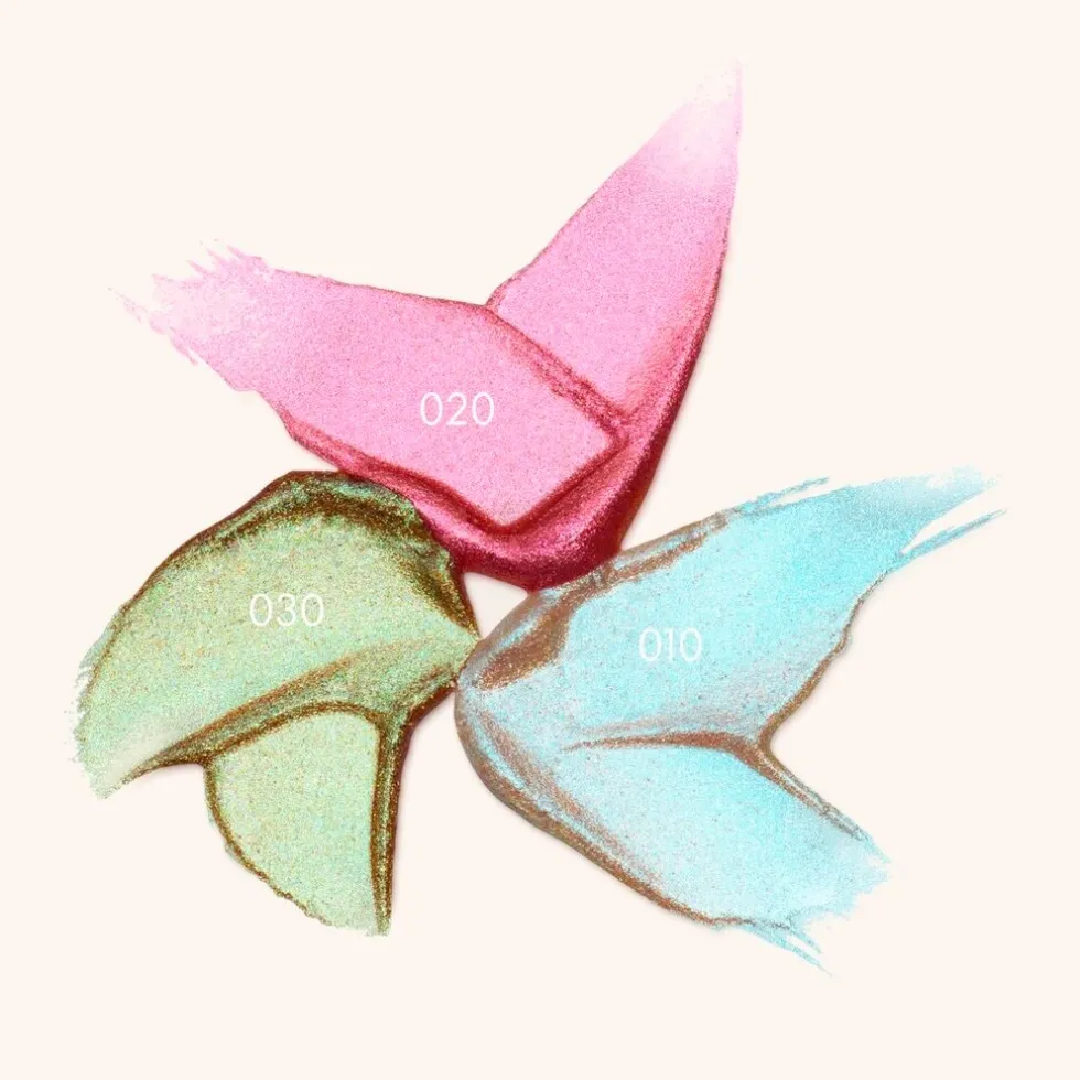 De oogschaduw combineert kleurveranderende reflecterende parels en een chromatische witte en blauwe tint voor een intens en long-lasting effect.