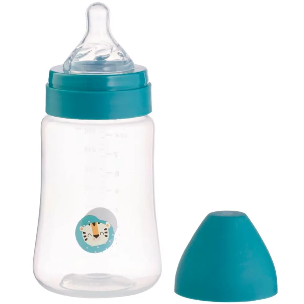 De fles is gemaakt van polypropyleen, de speen van siliconen. De zachte speen voelt aan als de moederborst. Gebruik de zuigfles vanaf de geboorte voor het geven van moedermelk of flesvoeding.