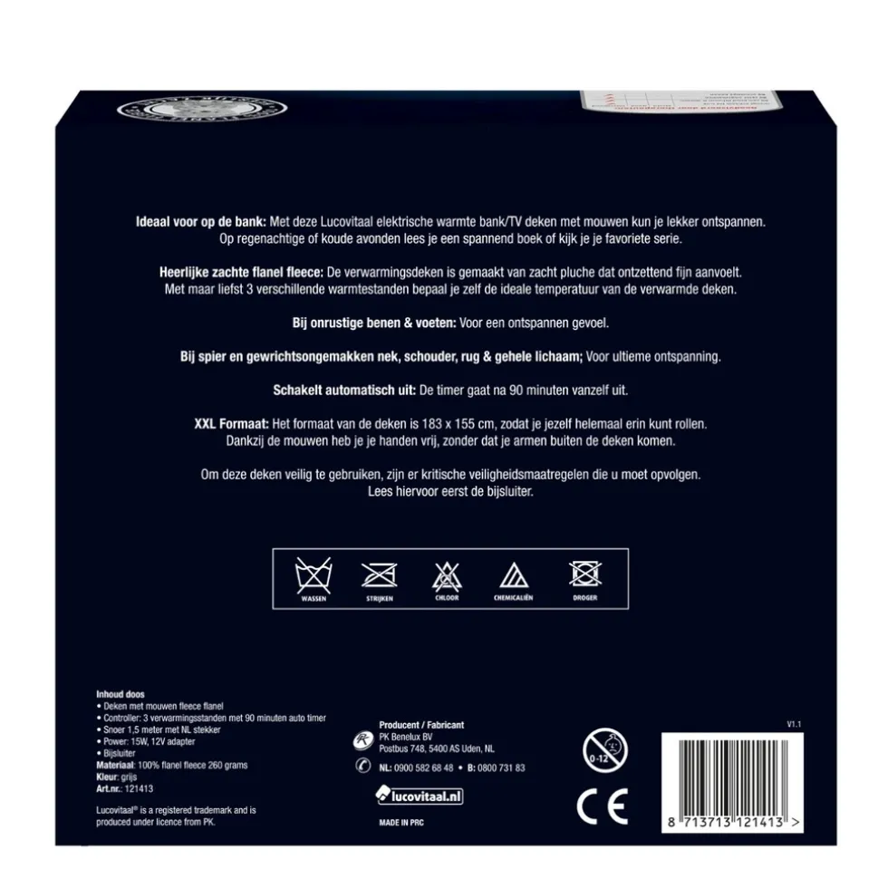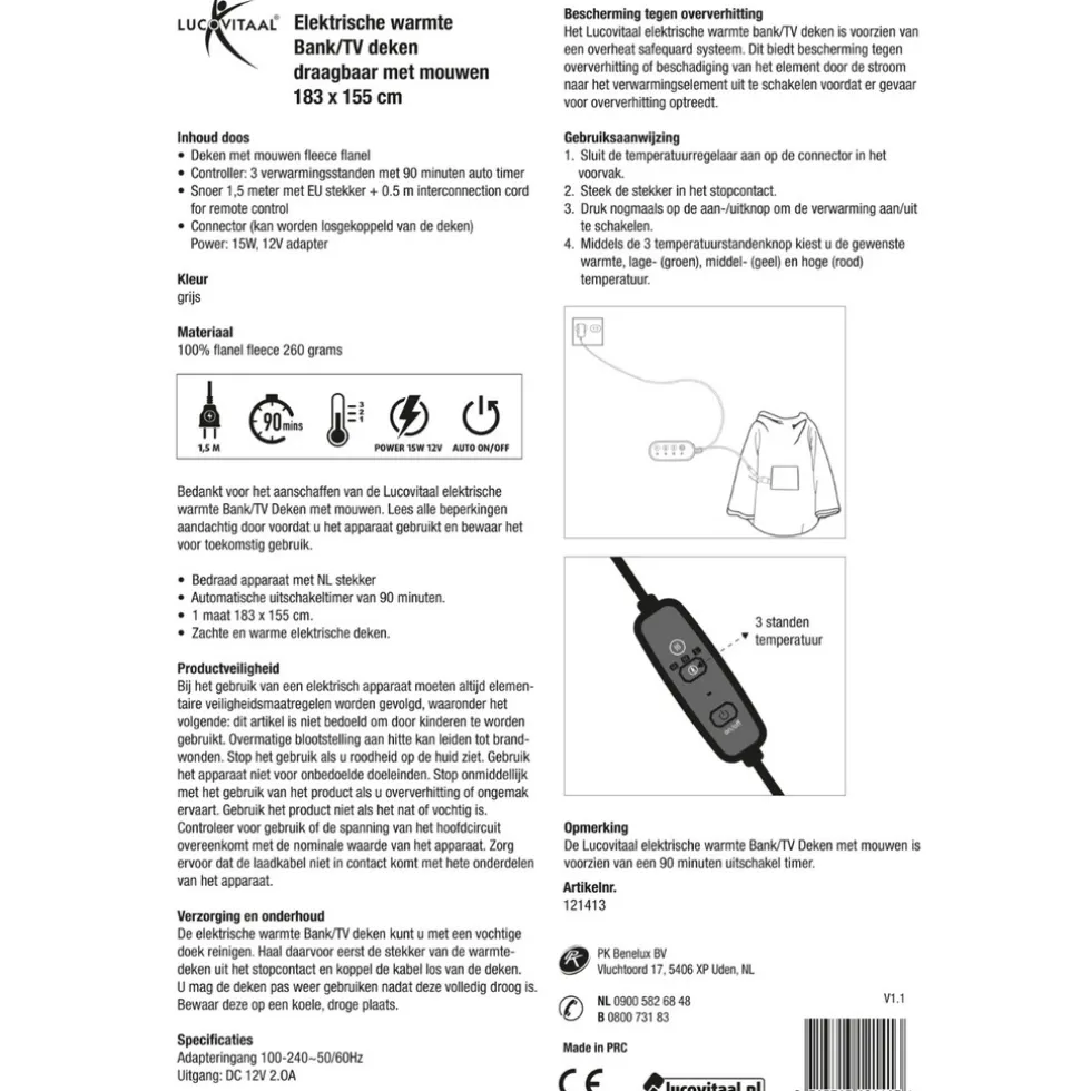 Ideaal voor op de bank: Met deze Lucovitaal elektrische warmte bank/TV deken met mouwen kun je lekker ontspannen. Op regenachtige of koude avonden lees je een spannend boek of kijk je je favoriete serie.