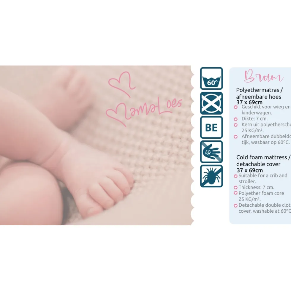 Discount MamaLoes Bram 37x69x7 Cm Ovaal Wiegmatras KMML241-37/69/7