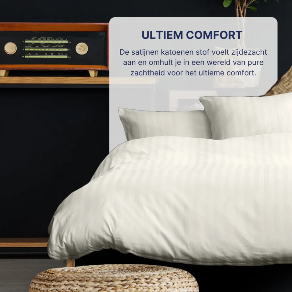 Katoen satijn is een ademende stof met een vocht absorberende eigenschap, dit zorgt voor de perfecte nachtrust.
