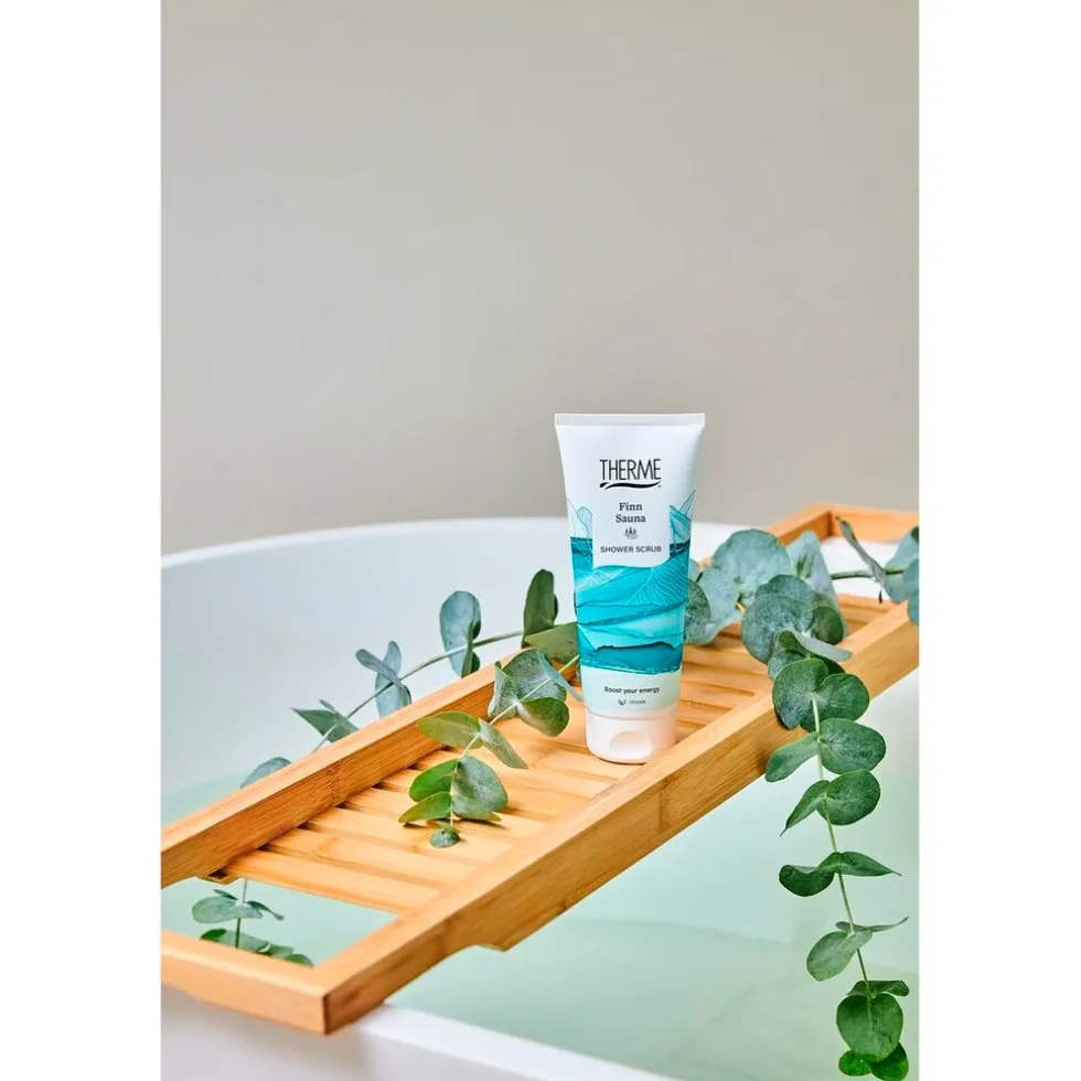Therme Finn Sauna Fresh Shower Scrub is geïnspireerd op het land van de duizend meren, de ongerepte natuur, de frisse zuivere lucht en het bekendste wellness ritueel, de Finse sauna.