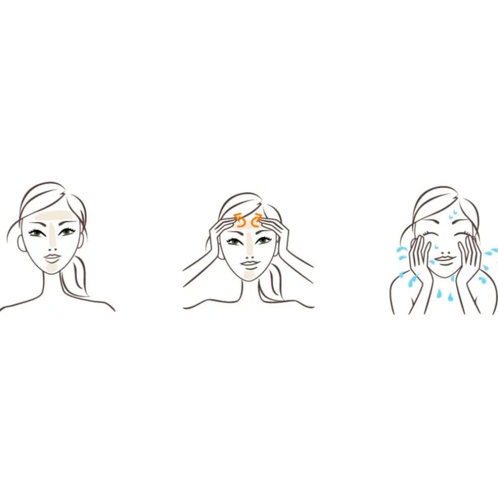 2. Als scrub: masseer in met ronddraaiende beweging met de nadruk op voorhoofd, neus en kin. goed afspoelen.