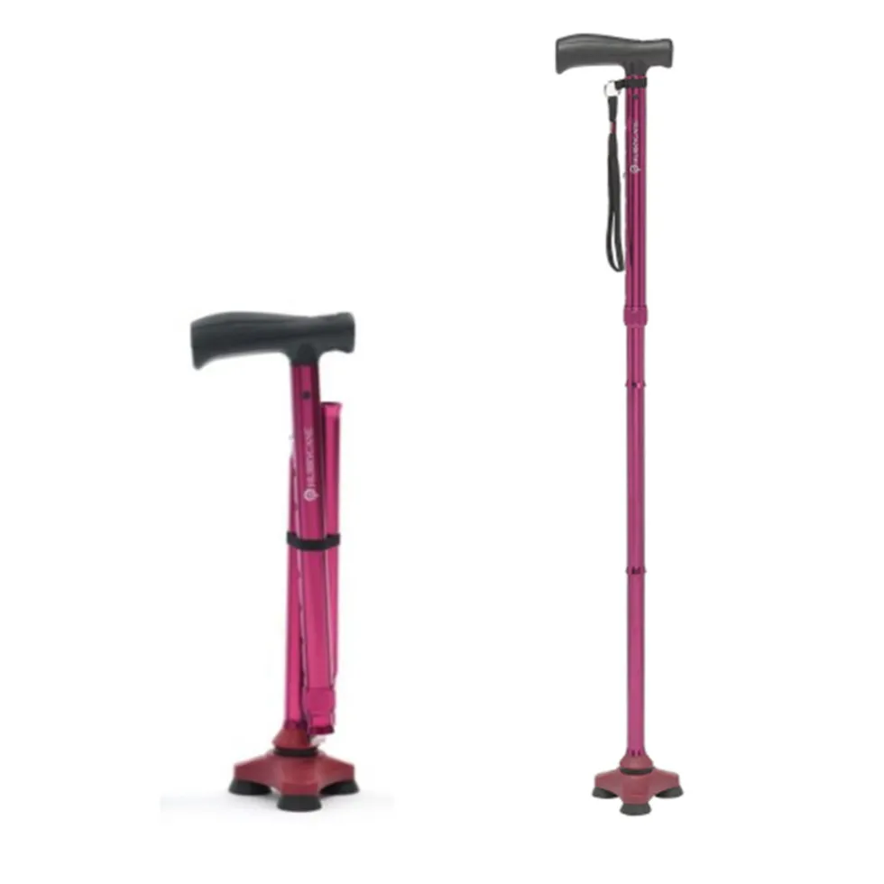 De opvouwbare wandelstok hurrycane rood is een handige en dynamische wandelstok met een speciale bewegelijke voet. Deze voet heeft 3 kleinere pootjes die voor extra stabiliteit zorgen. Met deze handige voet is de wandelstok geschikt voor verschillende ondergronden. U kunt de wandelstok opvouwen tot een klein en compact product. Hierdoor kunt u deze eenvoudig opbergen of vervoeren. Verder is de wandelstok ook in hoogte verstelbaar van 77 cm tot 95 cm, zodat deze zo goed mogelijk bij uw lengte past. Het maximale gebruikersgewicht voor deze wandelstok is 150 kg. De wandelstok heeft een comfortabel ergonomisch handvat en een polsbandje. De stok is gemaakt van aluminium. Dit product is een medisch hulpmiddel.