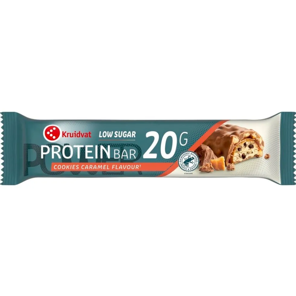 De Kruidvat Cookies Caramel Protein Bar combineert de smaak van knapperige koekjes met zoete karamel in een eiwitrijke reep. Een heerlijke keuze om je spieren te ondersteunen en je energie op te laden na het sporten.