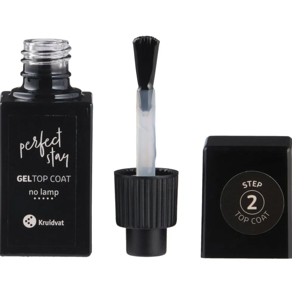 Ervaar de ultieme finishing touch met de vegan Kruidvat Perfect Stay Gel Topcoat. Deze topcoat is speciaal ontwikkeld om je nagellaklook te versterken en te verlengen, zonder dat je een lamp nodig hebt.