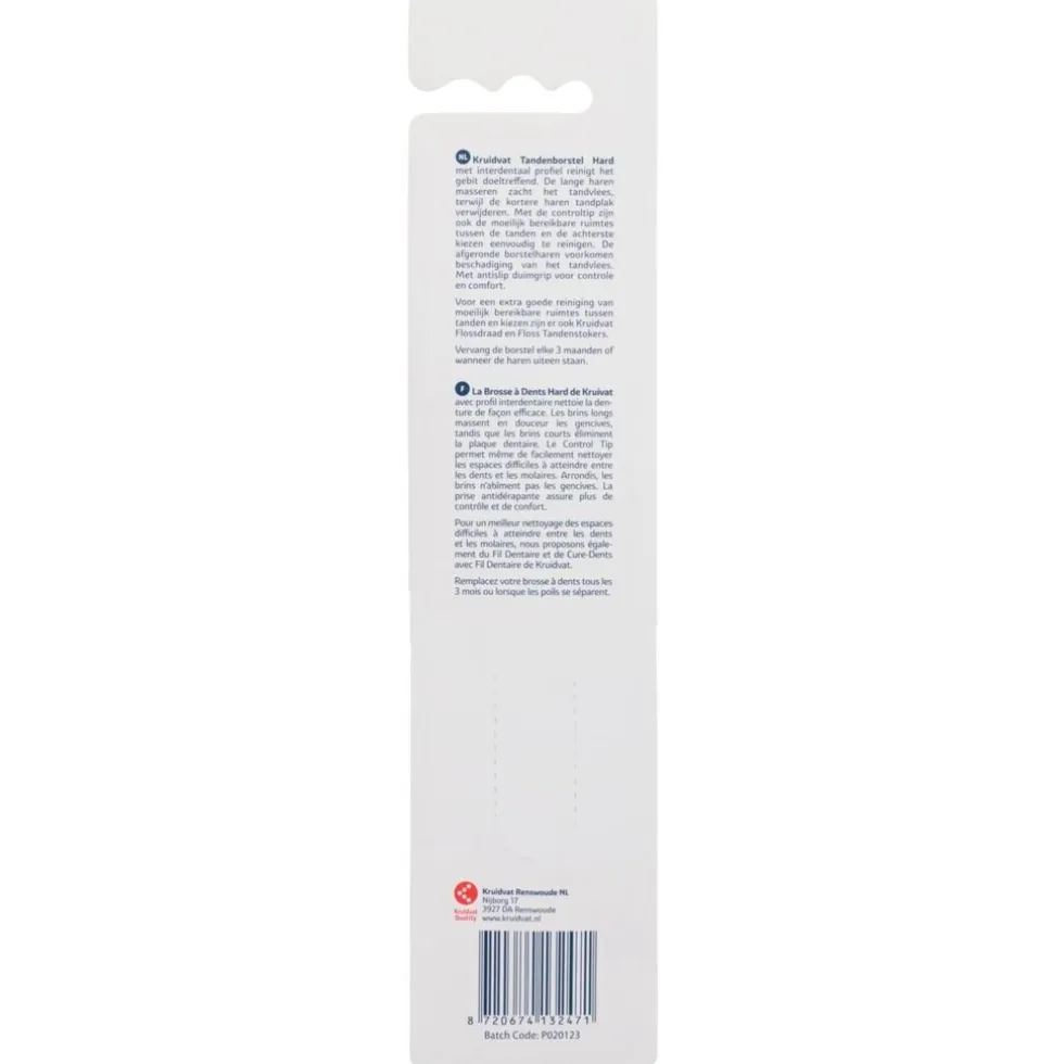 De Kruidvat Regular Hard Tandenborstels reinigen je gebit doeltreffend door het interdentale profiel met controltip, dat zelfs de moeilijk bereikbare ruimtes tussen je tanden en achterste kiezen reinigt.