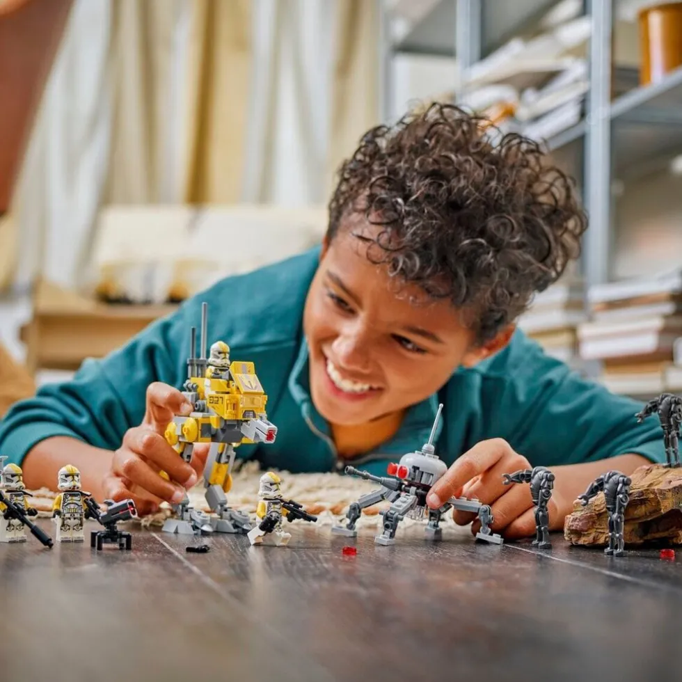 De set bevat vier LEGO Star Wars minifiguren van Clone Troopers in hun opvallende 327th Star Corps outfits met een blasterpistool, twee blasters en een blastergeweer en drie Super Battle Droid LEGO figuren. Deze Star Wars speelset bevat ook een AT-RT walker met een cockpit voor een LEGO minifiguur, een noppenschieter, opbergruimte voor een blaster en verrekijker en een geschutskoepel met noppenschieter voor Clone Troopers. De Super Battle Droids hebben een verstelbare Spider Droid voor spannende actie.