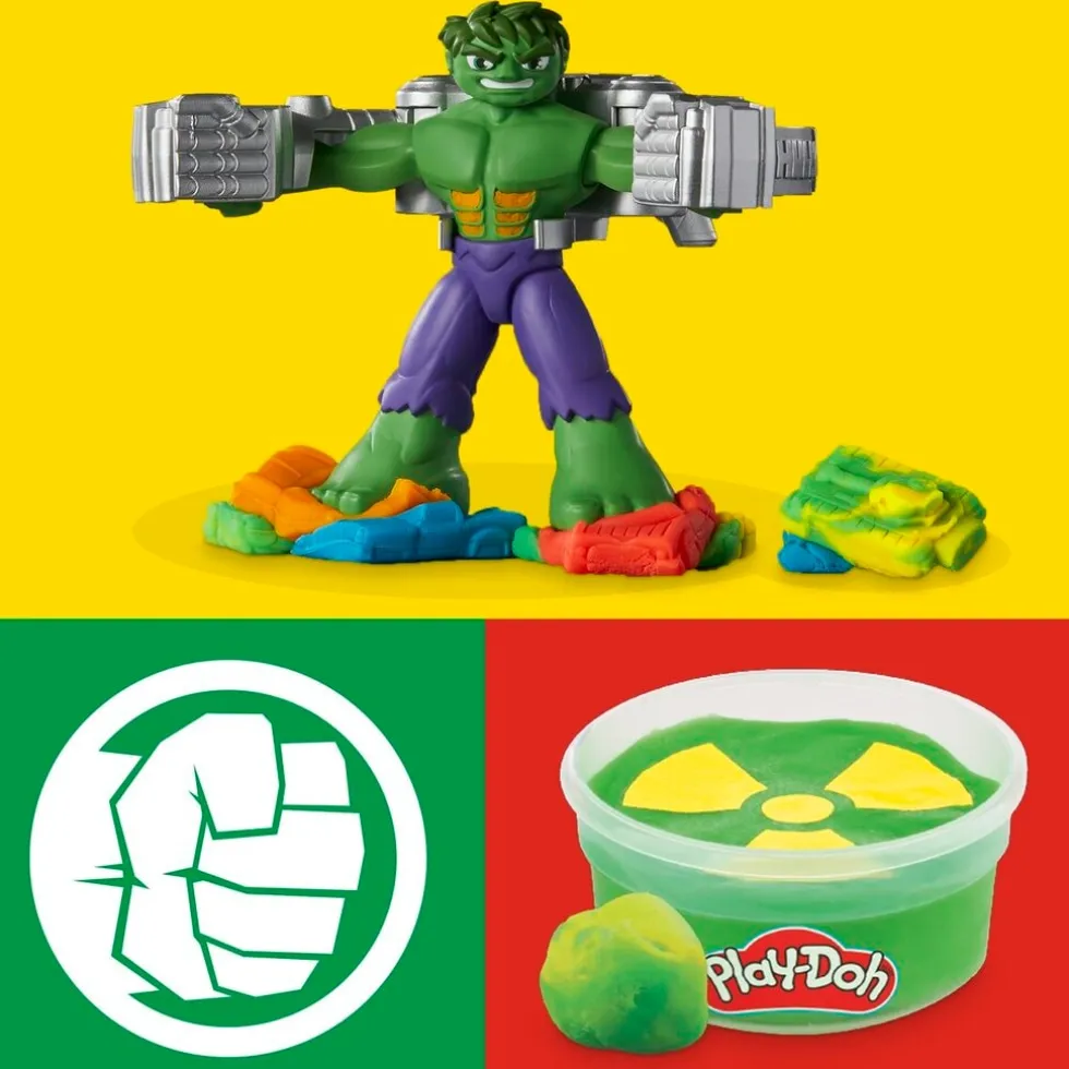 De Play-Doh Hulk Smash And Squish Playset komt met een een buigbare Hulk-actiefiguur van 12,7 cm! Ook bevat de set coole Play-Doh-accessoires waarmee je epische verhalen naspeelt.