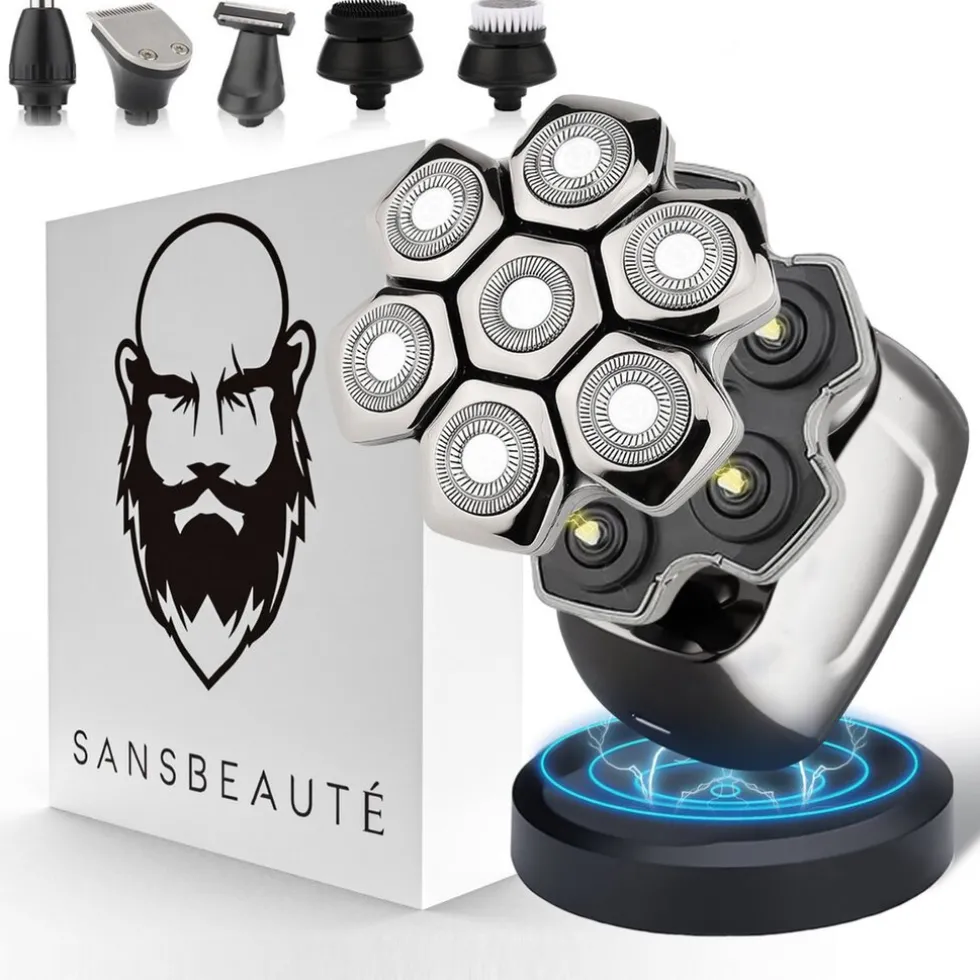 - Groter scheeroppervlak – Met 7 (!) ronde scheerkoppen bereikt het scheerapparaat van Sansbeauté® een groter scheeroppervlak zodat er meerdere haartjes tegelijk worden meegepakt. Zeven flexibele 7D scheerbladen bewegen vloeiend over je kin, schedel en wangen; het kan bijna niet makkelijker!