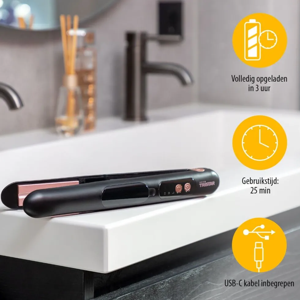 Tristar HD-2501 Snoerloze Stijltang,reistas,USB-C kabel,handleiding