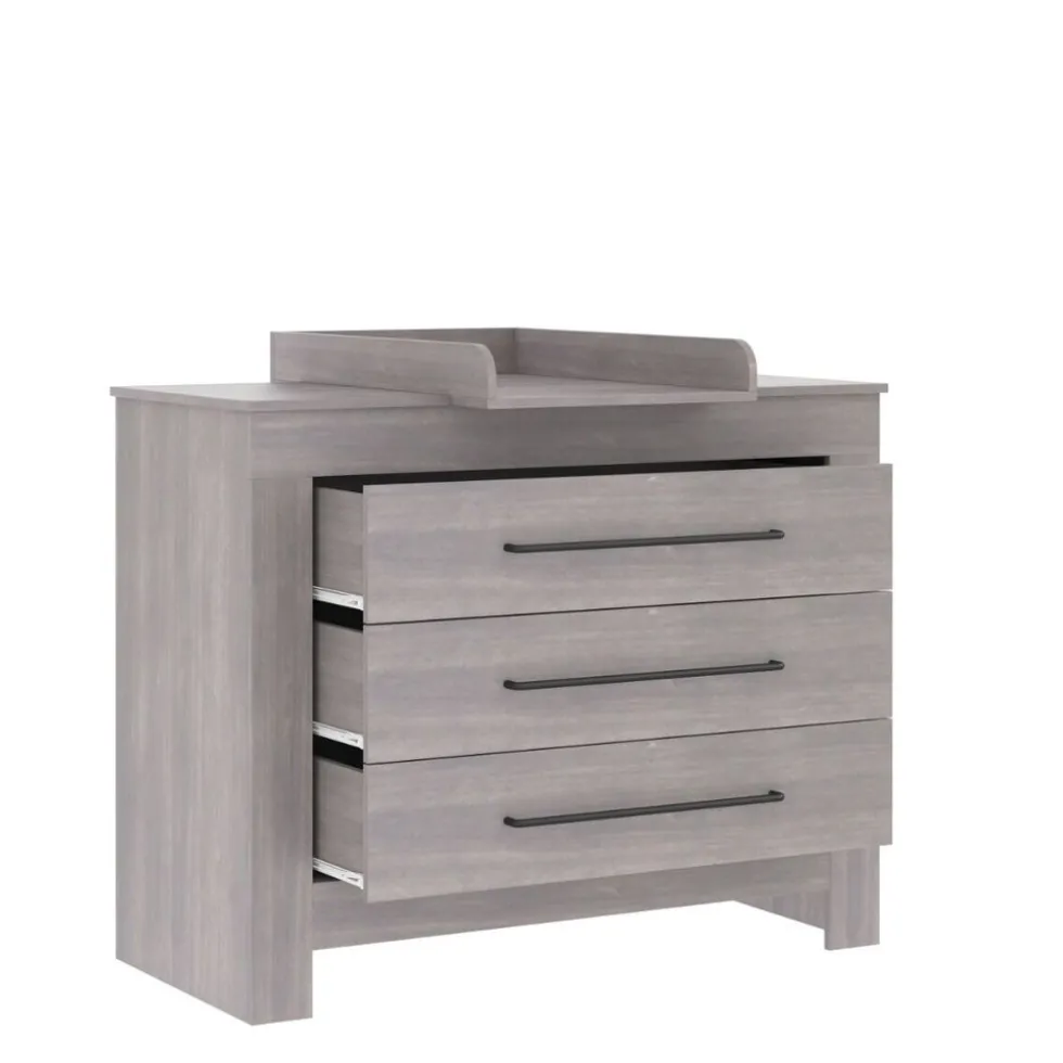 De Born Lucky commode Nevada Grijs Zwart heeft mooie zwarte handgrepen en past perfect bij de andere meubels uit de Born Lucky Nevada collectie. Combineer de commode met het bijpassende baby bed, kledingkast en wandplankje.