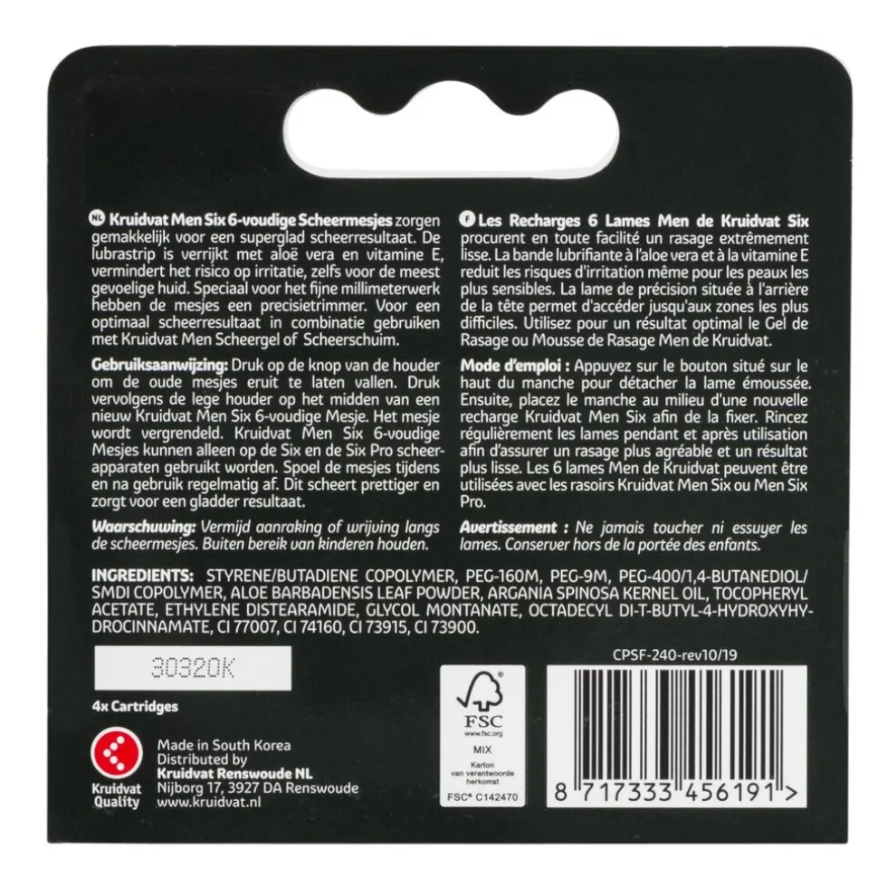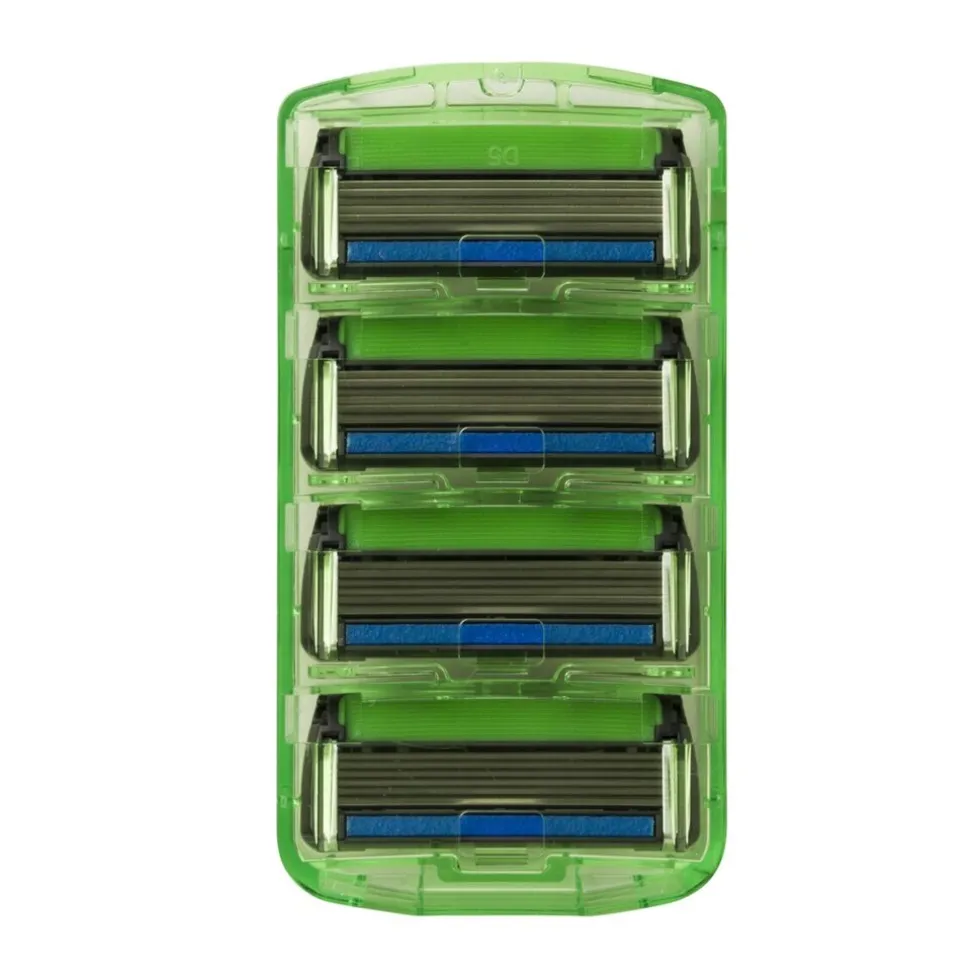 De scheermesjes kunnen alleen op het Six scheerapparaat gebruikt worden. Spoel de mesjes tijdens en na gebruik regelmatig af. Dit scheert prettig en zorgt voor een gladder resultaat.