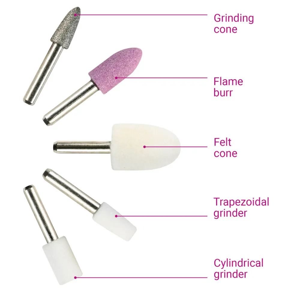 Deze set stelt u in staat uw nagels op een gemakkelijke manier prachtig uit te laten zien. De set is tevens erg eenvoudig mee te nemen in de bijgeleverde opbergetui. De vijf slijtvaste en veelzijdige opzetstukjes zorgen ervoor dat u voor iedere klus het juiste materiaal bij handen heeft.