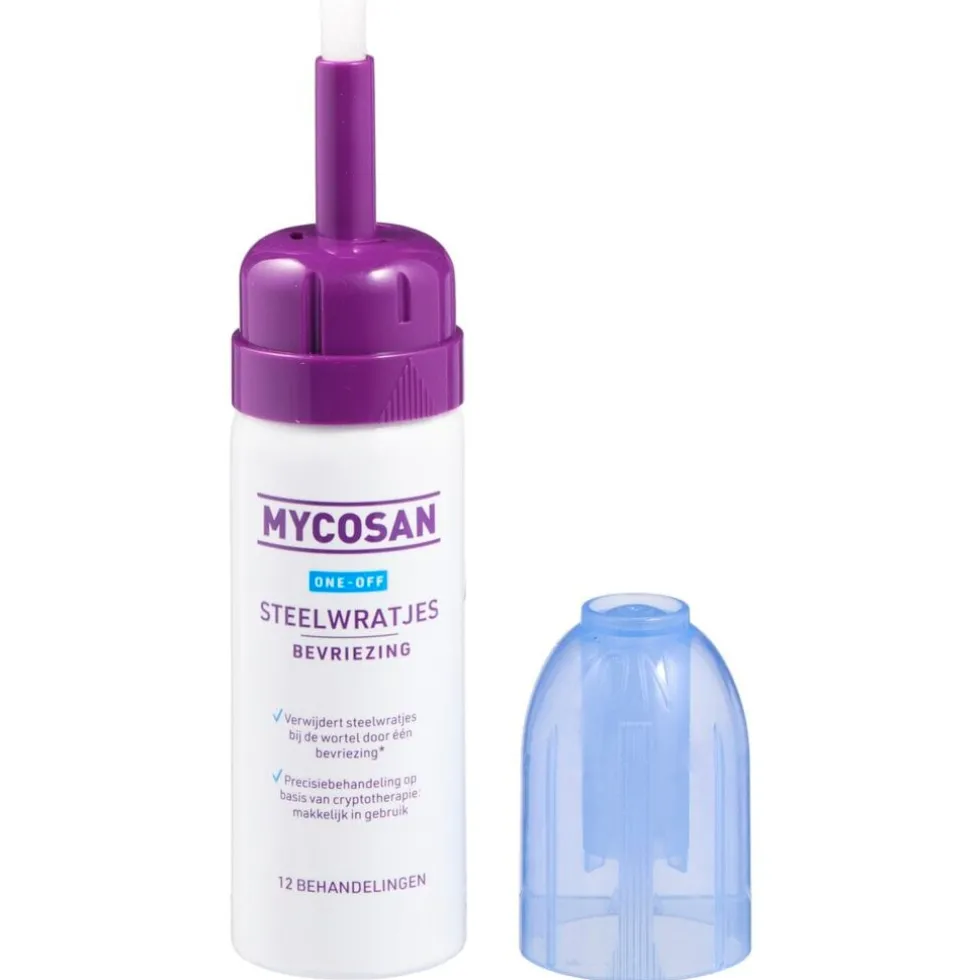 Mycosan Steelwrattenbevriezing verwijdert steelwratjes bij de wortel in één behandeling door bevriezing. Je bent dus in één keer wratvrij!*