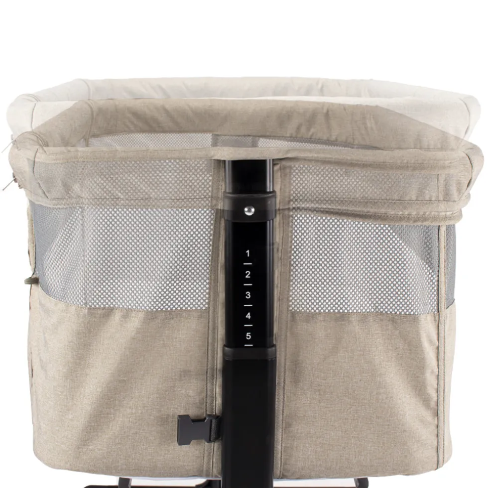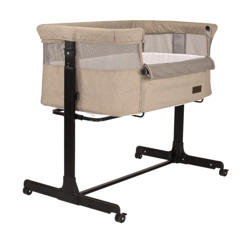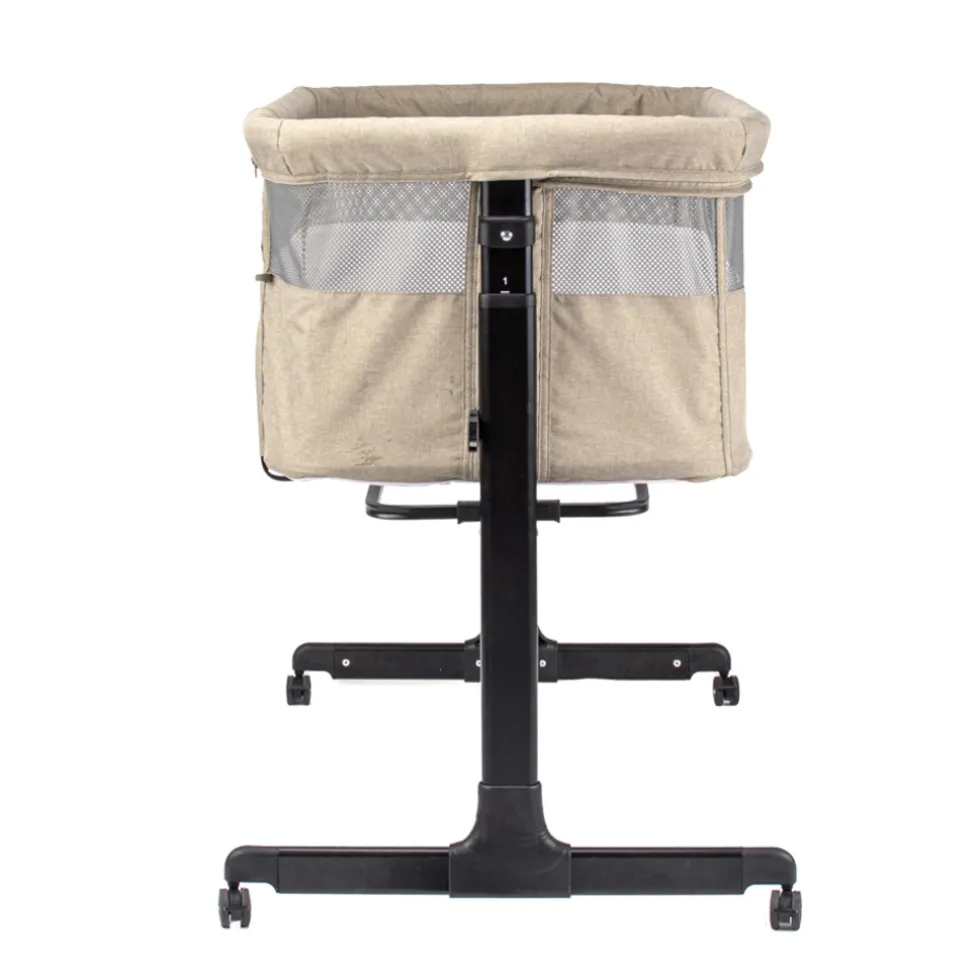 De co-sleeper staat op een stevig frame welke is voorzien van wielen zodat je de wieg ook eenvoudig verplaatsen. De wieg is aan beide zijdes volledig verstelbaar, zodat de wieg altijd een goede aansluiting op het ouderlijk bed heeft. Het frame heeft ook een anti-reflux functie; wanneer je de zijde waar je kindje met het hoofdje ligt hoger zet dan de voetjes, is de kans op reflux kleiner waardoor je kindje minder last kan hebben van buikkrampjes.