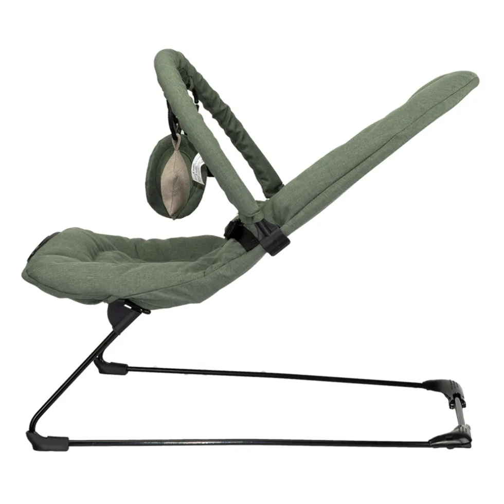 De wipstoel heeft een leuke speelboog met 3 speeltjes. De speeltjes bestaan uit 2 (knijp)speeltjes die geluid maken en 1 spiegeltje. De speelboog is afneembaar maar ook weer eenvoudig vast te klikken. Jouw kindje wordt veilig in de bouncer bevestigd door middel van een 3 -puntsgordel. Is de bekleding vies? Geen probleem, deze is afneembaar en wasbaar in de wasmachine.