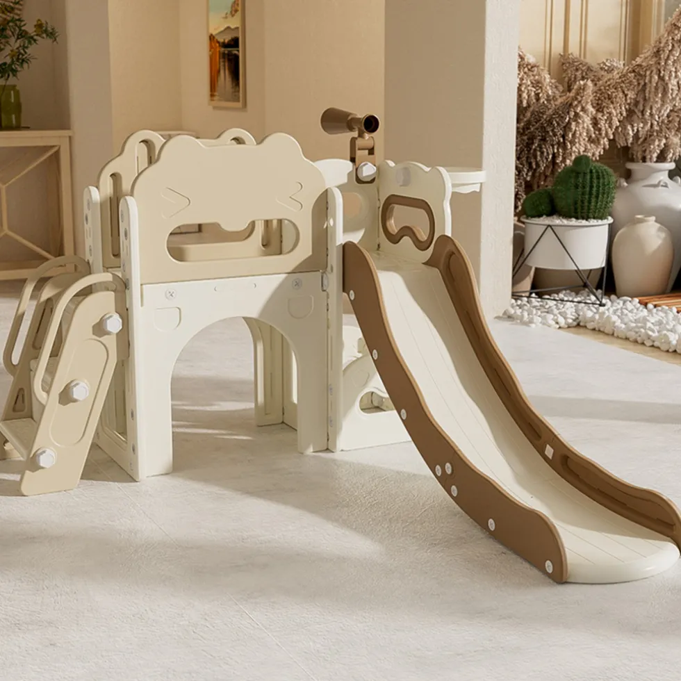 • Bevat een glijbaan, opbergruimte, poort, loopbrug en verrekijker