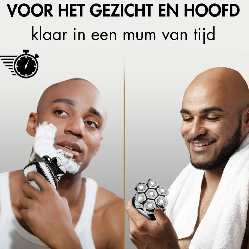 Ben jij ook klaar met ongewenst haar en het gebruik van botte scheermessen die wondjes achterlaten? Dan hebben wij dé perfecte oplossing voor jou: de Sansbeauté® 6-in-1 scheerapparaat | SKULLSHARP PRO MAGNETIC! Dit apparaat beschikt over 7 flexibele 7D scheerkoppen en multifunctionele opzetstukken, waarmee jij razendsnel elk haartje op je hoofd, gezicht en lichaam weg kunt scheren. De gepatenteerde scheerbladen bewegen nog makkelijker mee met de contouren van je gezicht en hoofd, waardoor elk haartje wordt geschoren! Met de 6 verschillende opzetstukken heb jij alles wat je nodig hebt in huis en hoef je slechts één keer te investeren. Dankzij het LED-display kun je gemakkelijk aflezen wanneer het apparaat moet worden gereinigd en opgeladen. Het apparaat is volledig waterproof waardoor een snelle behandeling onder de douche een feit is! Ook zijn de SKULLSHARP PRO MAGNETIC blades voorzien van een magnetisch scheerblad, waardoor je de scheerkop zeer makkelijk kunt openen en reinigen. Als kers op de taart ontvang je bij deze set een exclusief e-book met waardevolle tips voor een duurzaam gebruik. Ook wordt deze set geleverd met een extra scheerkop t.w.v. €24,99. Kortom, met de Sansbeauté® 6-in-1 SkullSharp PRO MAGNETIC ben jij verzekerd van een gladde en zachte huid zonder wondjes of irritaties. Bestel nu en ervaar het zelf!