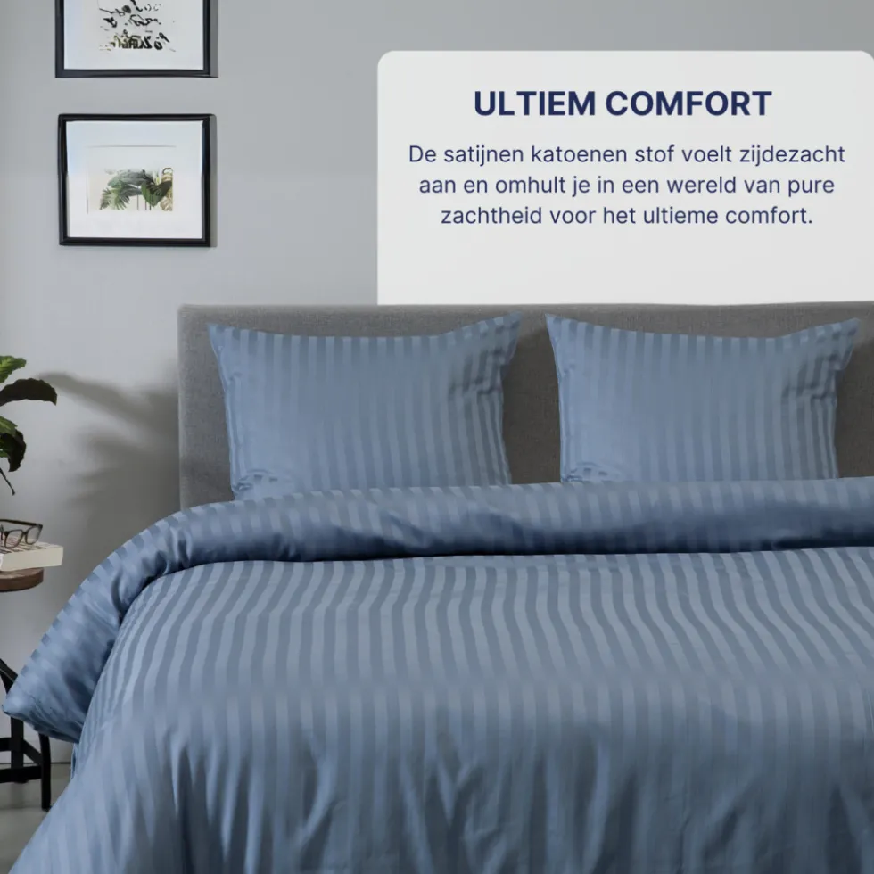 Katoen satijn is een ademende stof met een vocht absorberende eigenschap, dit zorgt voor de perfecte nachtrust.