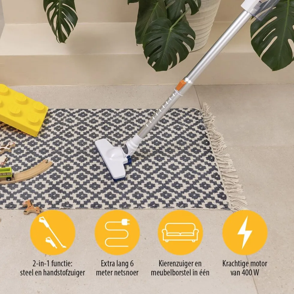 - Krachtig vermogen van 400 W,wat deze stofzuiger jouw ideale schoonmaak-buddy maakt