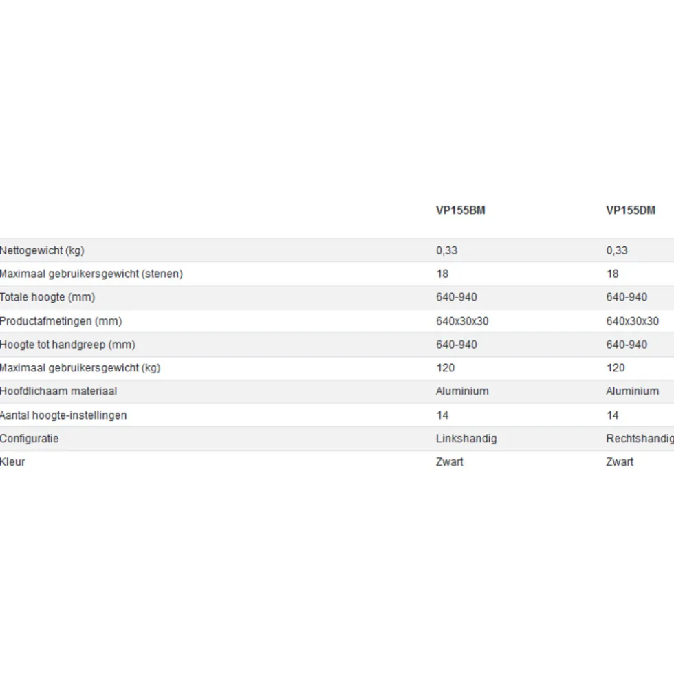 - Maximaal gebruikersgewicht limiet 120kg (18 steen)