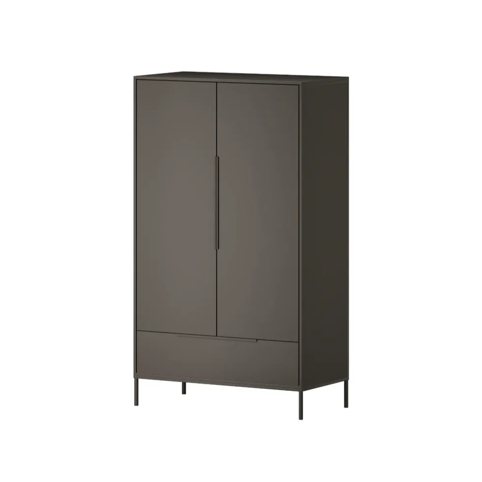 Onderaan de kast vind je een ruime opberglade die zich perfect leent voor het bewaren van losse spulletjes die je graag binnen handbereik hebt. Denk aan accessoires, extra lakentjes of seizoensgebonden kleding. De hoge pootjes onder de kast geven het meubel een luchtige en ruimtelijke uitstraling, waardoor de kamer groter oogt.