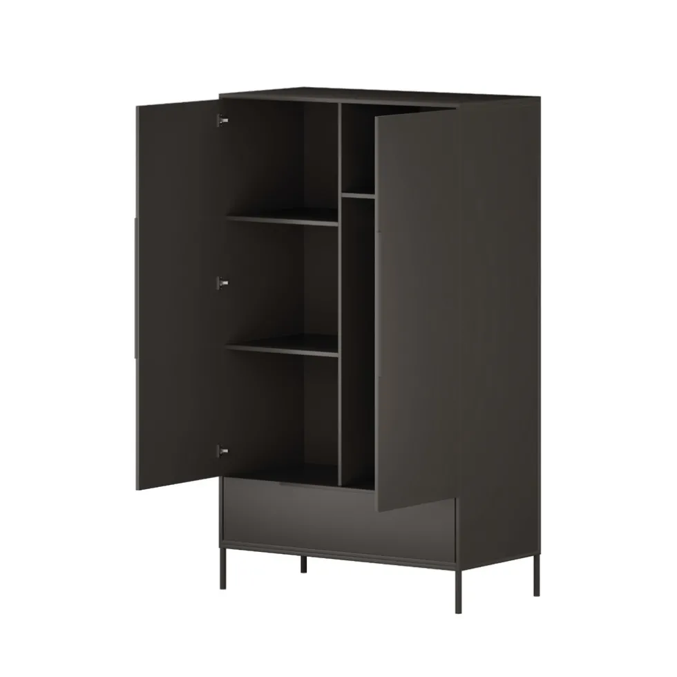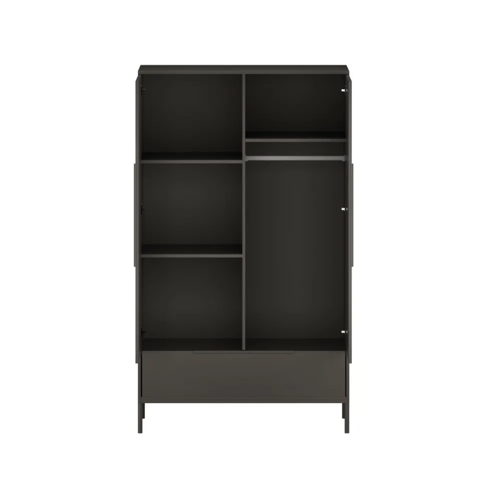 Achter de twee deuren van de Born Lucky Lissabon Kledingkast bevindt zich een ruim hang- en leggedeelte dat ideaal is voor het opbergen van kledingstukken. Zo blijven favoriete setjes netjes en direct binnen handbereik. De kledingkast biedt voldoende ruimte om alles overzichtelijk te ordenen, wat het dagelijks aankleden een stuk gemakkelijker maakt.