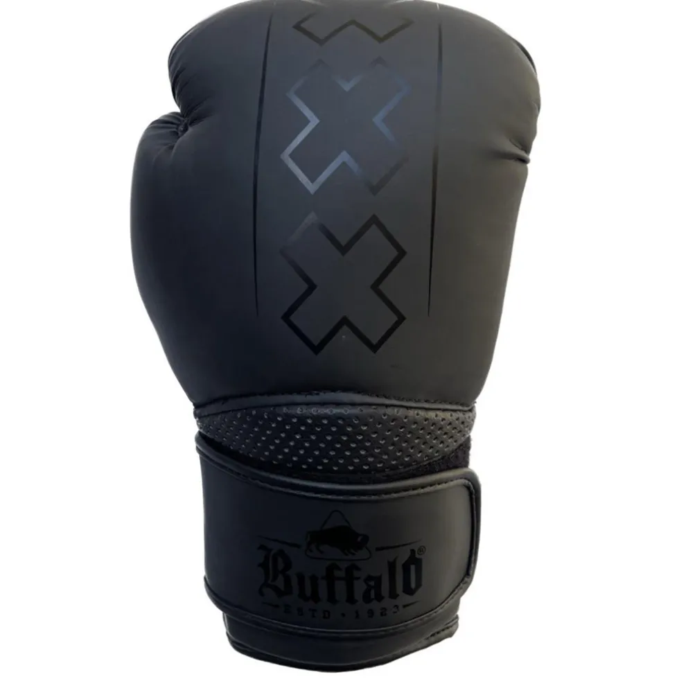 Deze Buffalo bokshandschoenen hebben een strak zwart op zwart design met een perfecte pasvorm. De Buffalo Metal bokshandschoenen 12oz zijn gemaakt van Skintex,een hoge kwaliteit kunstleer,en zijn voorzien van ventilatie mesh voor minder transpiratie van de hand,een betere grip en optimaal draagcomfort. De driedubbele foam padding zorgt voor een goede schokabsorptie en de vaste duim voorkomt blessures. De stevige klittenband sluiting is makkelijk in te stellen voor een goede en comfortabele pasvorm. De Buffalo Metal bokshandschoenen zijn geschikt voor zowel de beginnende als de gevorderde vechtsporter. Specificaties: