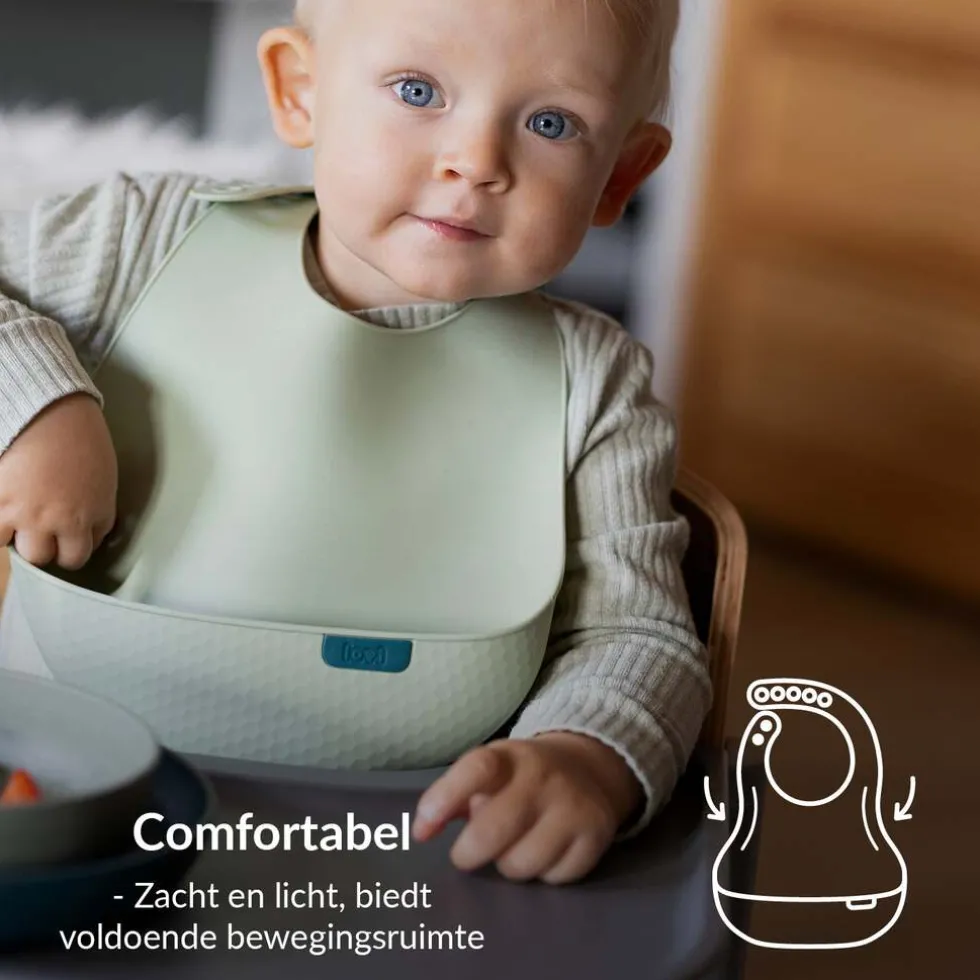 Het materiaal is eenvoudig schoon te maken onder de kraan met een mild afwasmiddel of in de vaatwasser. Te gebruiken vanaf 4+ maanden en verkrijgbaar in de trendy kleuren Pistachio en Nude.