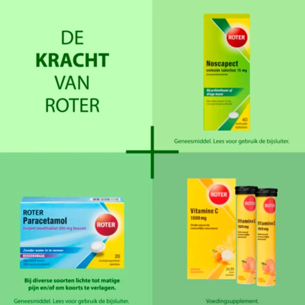 Roter Noscapect Tabletten* helpen prikkelhoest of droge hoest te verminderen. De tabletten verlichten je hoestprikkel en zijn makkelijk mee te nemen voor onderweg.
