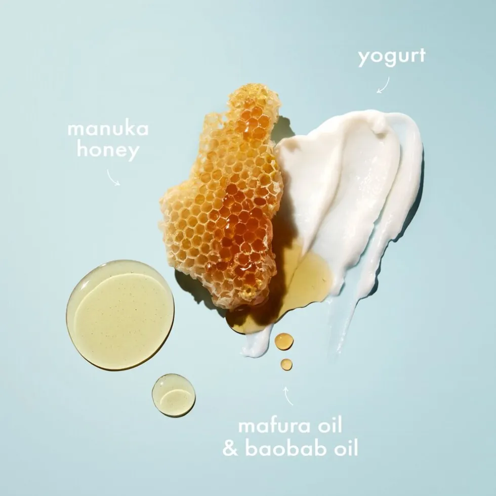 • Het haarmasker is verrijkt met manukahoning, yoghurt en fair trade sheaboter.