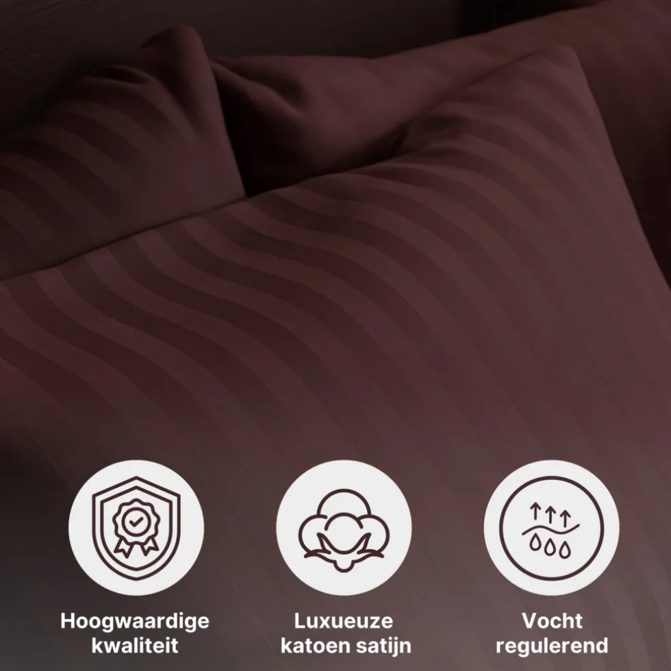 Katoen satijn is een ademende stof met een vocht absorberende eigenschap, dit zorgt voor de perfecte nachtrust.