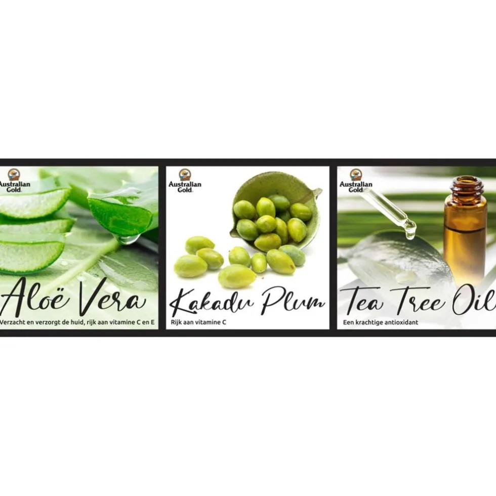 De Australian Gold Instant Bronzer SPF15 Zonnebrand Spray Gel biedt optimale voeding, een superieure huidverzorging (zeer rijk aan vitamine C-, aloë vera, vitamine E, Australische tea tree olie en zonnebloemextracten) en als extraatje een instant golden glow!