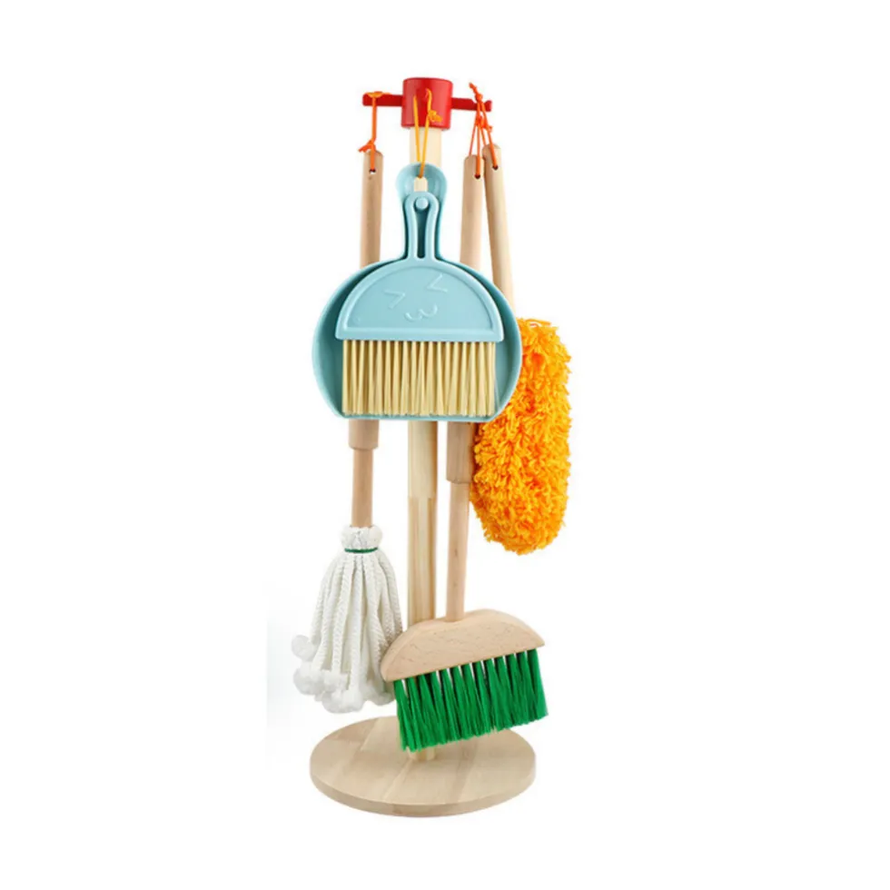 Deze speelgoed schoonmaakset stimuleert kinderen om verantwoordelijkheid te leren terwijl ze spelen. Het gebruik van stevig houten materialen geeft de set een natuurlijke uitstraling en maakt het veilig en geschikt voor kinderen.