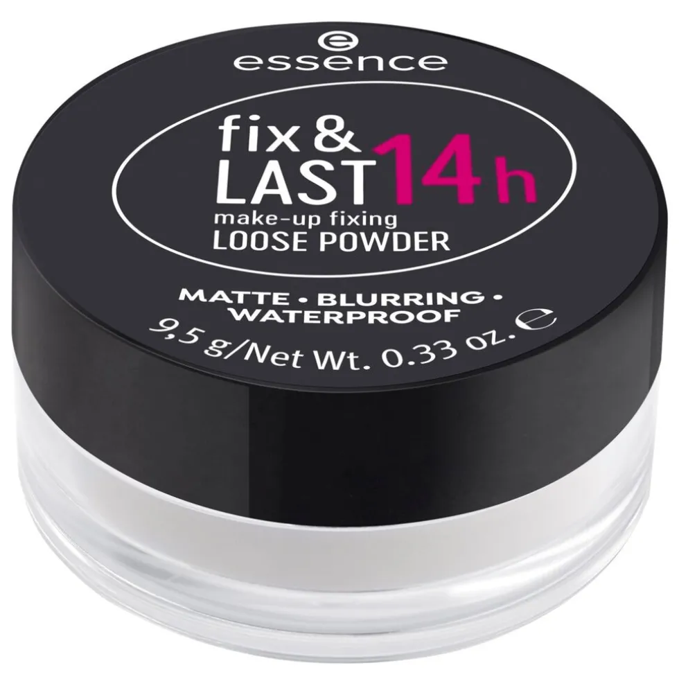 De Essence Fix & Last 14G Make-Up Fixing Loose Powder is waterproof en fixeert je make-up tot veertien uur lang. Het absorbeert overtollige olie voor een matte finish en een gladdere, verfijndere teint.