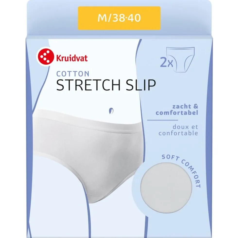 De Kruidvat Cotton Stretch Damesslip is gemaakt van zacht, elastisch katoen dat zorgt voor een optimale en aansluitende pasvorm.