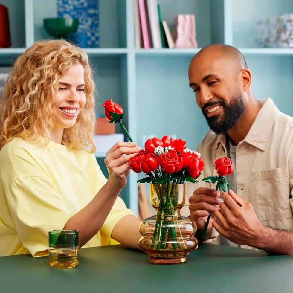 Het LEGO Botanical Collection 10328 Rozenboeket is een plezier om te bouwen en bevat een dozijn rode rozen. De rozen hebben verschillende bloeistadia, vier zijn in volle bloei, vier bijna in bloei en vier in knop. Ze hebben lange groene stelen om in een vaas te plaatsen, plus vier takjes gipskruid met kleine witte bloemetjes. Het boeket is eenvoudig in elkaar te zetten en vormt een elegante blikvanger in elke ruimte.