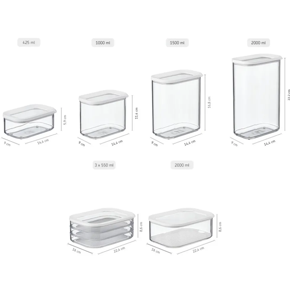 De Mepal Modula bewaardoos is dé oplossing om overzicht te creëren en een opgeruimde keukenla te hebben. Deze voorraaddoos heeft afgeronde hoeken en geeft door de doorzichtige deksel direct zicht op de inhoud in de keukenla. De Modula bewaardozen zijn stapelbaar en hebben een perfecte afsluiting door de afdichtring. De Modula voorraadozen zijn in verschillende maten verkrijgbaar, afgestemd op gangbare droge levensmiddelen. Alle Modula bewaar- en koelkastdozen zijn vaatwasmachinebestendig.